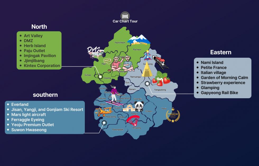 Book a car with driver for a day. Driver guide Mr Kim was very professional. Our ride was very comfortable. He also assisted in buying entry tickets and advice on the places we visit. Overall a very pleasant trip.